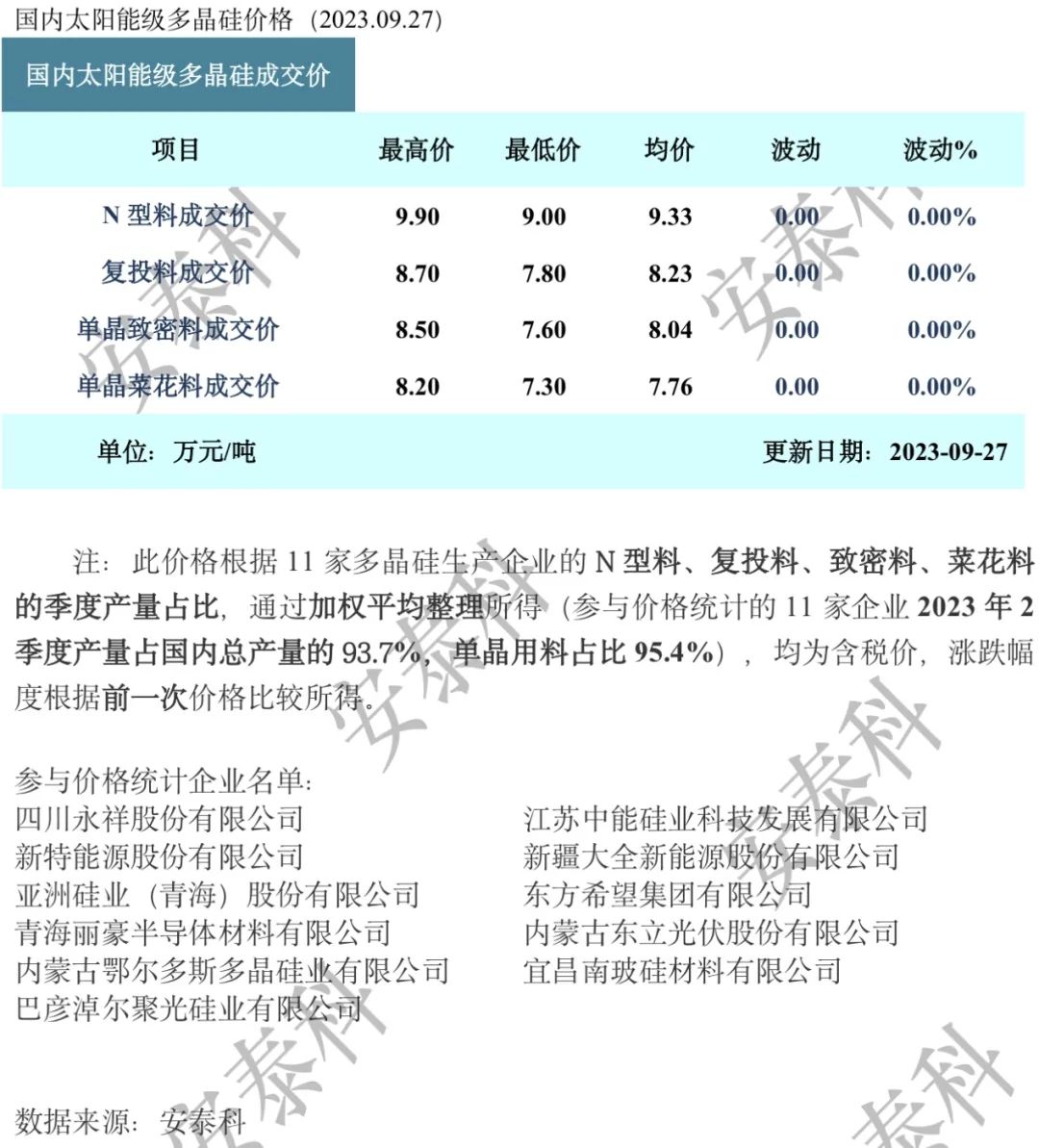 截止九月最后一周,硅料订单的发运情况仍不甚乐观,个别用料企业的缺料状态仍持续存在,采购方面的催料力度也有所加剧,毕竟对于未来四季度的价格走势存有恐跌的担忧。