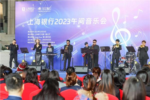 为庆祝上海银行成立28周年,迎接2024新年,上海银行午间音乐会再次唱响。由上海Lucky Dream爵士管乐团带来的专场演出吸引了众多周边白领、市民侧耳倾听。