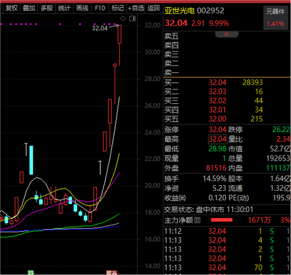 近期,较为强势的个股也多包含科技概念。领湃科技、亚世光电、通易航天等连续上涨,均属于较受关注的科技题材。其中,已经连续收获5个涨停板的亚世光电早盘再度涨停。