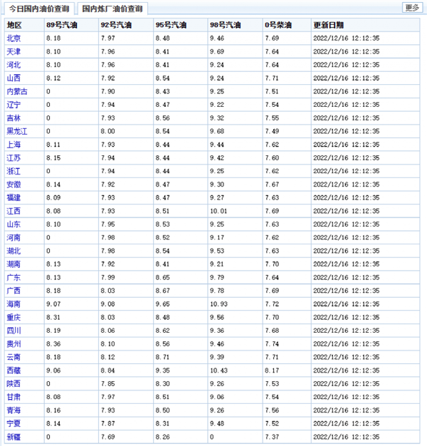按照成品油价格调整机制,10个工作日为一个调价周期。据机构测算,截至12月16日第九个工作日,参考原油品种均价为76.76美元/桶,变化率为-6.84%,对应的国内汽柴油零售价下调460元/吨,超过下调红线。折合每升计算,预计汽油、柴油每升下调0.34元-0.38元/升。