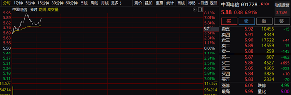 今天早盘,A股市场数字经济板块持续大爆发,中国电信等大盘股涨势很猛。